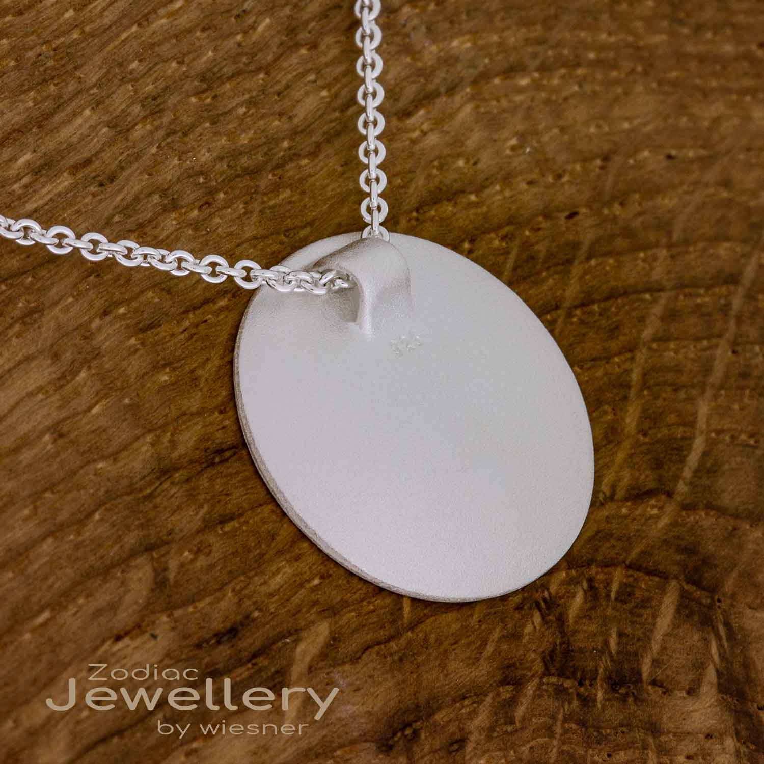 Feine, handgravierte Linien verbinden die Diamanten und zeichnen das vollständige Sternbild nach. Diese detailreiche Arbeit verleiht dem Anhänger Tiefe und macht ihn zu einem faszinierenden Blickfang. Der Kontrast zwischen der matten Oberfläche des Anhängers und dem Funkeln der Diamanten erzeugt ein spannendes Wechselspiel von Licht und Schatten.